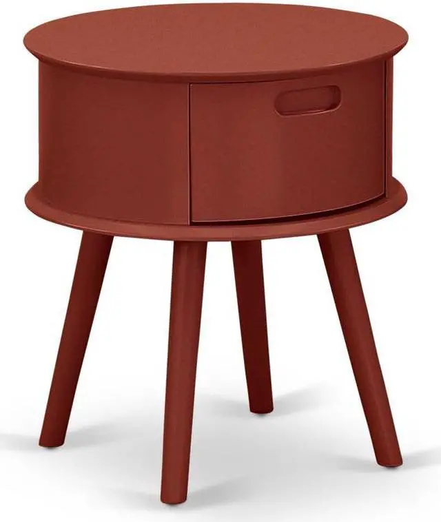 Gordon night stand with drawer Gives a stylish elegance to your Bedroom with our delightful round top night stands. On the simple beauty furniture, this adaptable small nightstand combines economy and grace. Proving that less is typically more, the single door hosts a plain inset panel and a brushed metal pull as its only decors, while the tapered legs give a delicate counterpoint. Wood nail head accents finish the piece with a handmade feel and appear. Asian Wood gives this stand in a Burhundy or Natural finish. your living room space with this beautiful round-shaped end table.