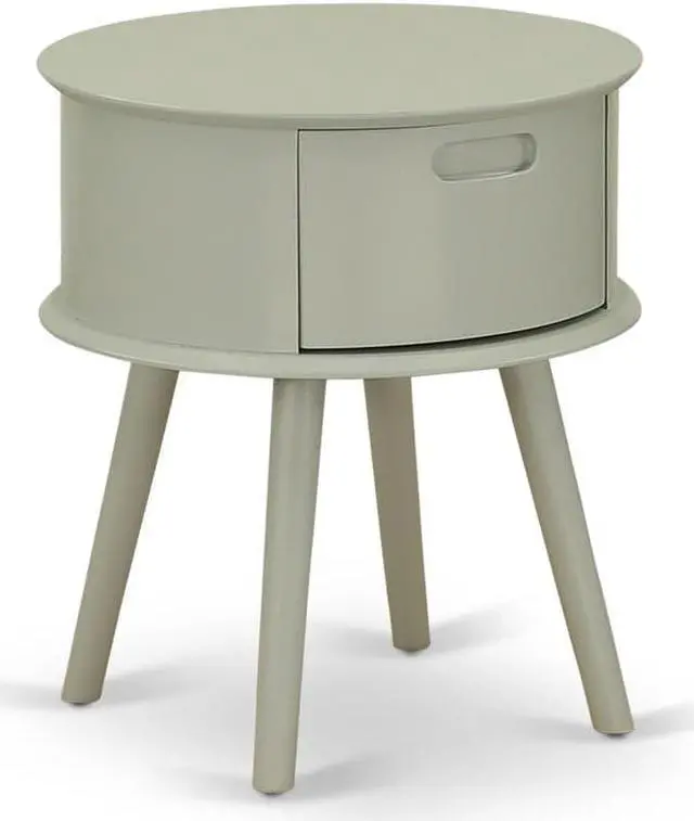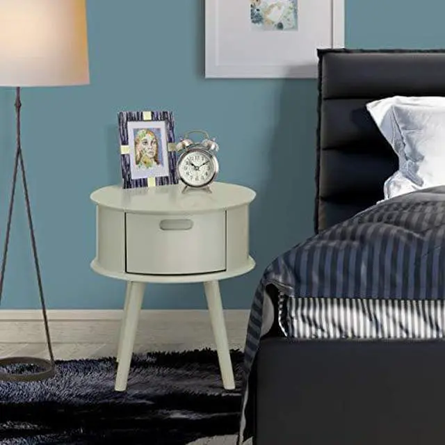 Gordon night stands for bedrooms Offers a stylish elegance to your bedroom with our beautiful bedroom nightstand. On the simple beauty furniture, this adaptable rounded end table combines economy and style. Showing that less is sometimes more, the single door hosts a plain inset panel and a brushed metal pull as its only decorations, as the tapered legs add a delicate counterpoint. Wood nail head accents finish the piece with a handmade feel and look. Asian Wood gives this stand in a Urban Gray or Natural finish. your living area space with this beautiful round-shaped end table.