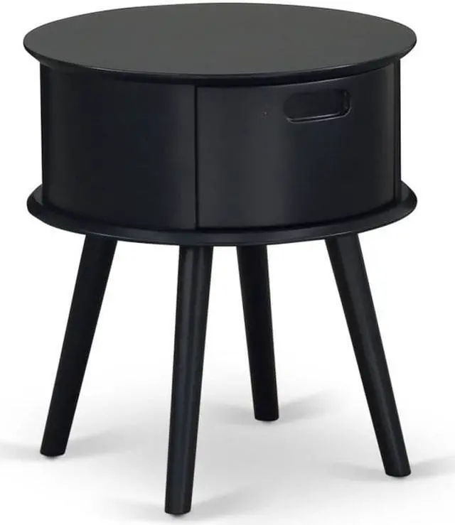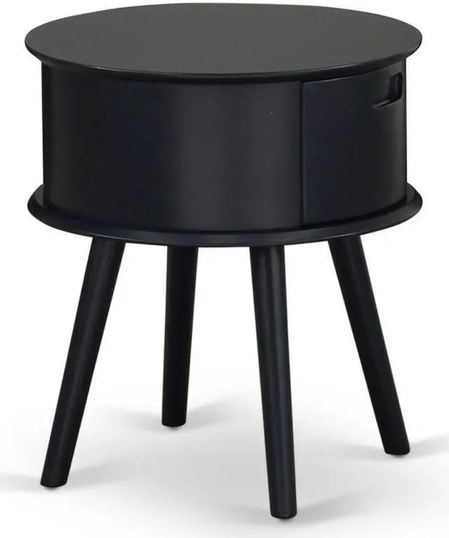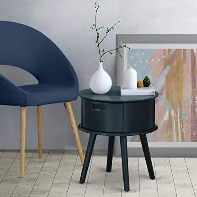 Gordon modern nightstand It provides a trendy beauty to your bedroom with our wonderful round table night stand. On the simple beauty furniture, this versatile night stands combines economy and elegance. Showing that less is typically more, the single door hosts a plain inset panel and a brushed metal pull as its only decorations, as the tapered legs add a beautiful counterpoint. Wood nail head accents finish the piece with a handmade look and feel. Asian Wood gives this stand in a Navy Blue or Natural finish. your living area space with this lovely round-shaped end table.