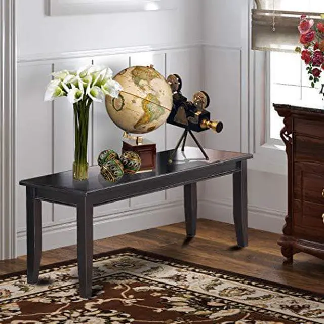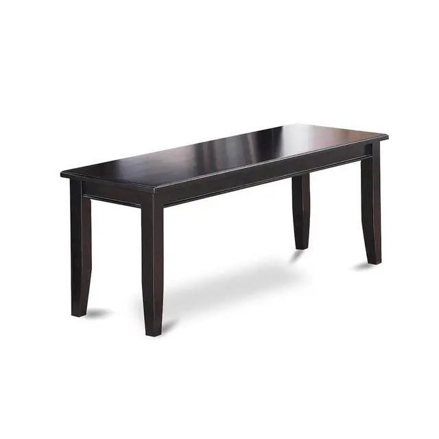 One Dudley Dining Bench With wood seat. Constructed with all solid wood. Simple, plain design. Finished in a rich Black color. Include: Dudley Dining Bench with Wood Seat in Black Finish.