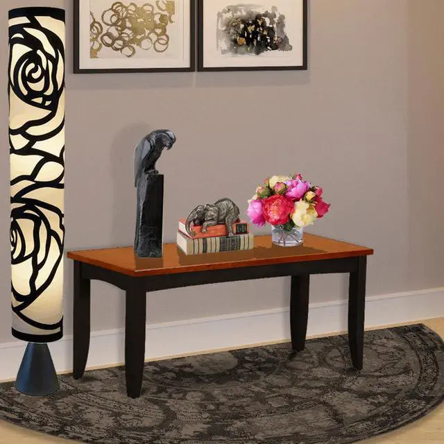 Parfait Dining Room Bench with Wood Seat in Black and Cherry Finish