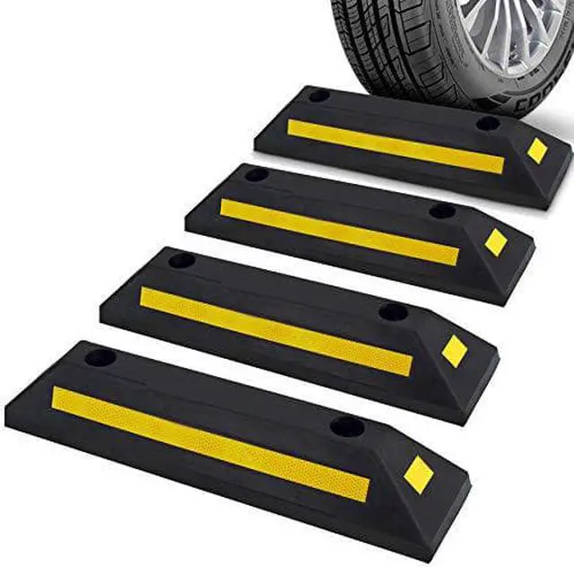 Features: Rugged, Durable, Reliable Wheel Stop Heavy-Duty Reinforced Curb Tire Construction Provides Convenient Vehicle Parking Assistance Universal Placement Perfect for Garage, Driveway, Parking Lot High-Visibility, Bright Yellow Reflective Safety Strip Marine Grade Waterproof & Weather-Resistant Design Hassle-Free, Tire Stoppers Designed to Be Placed on the Ground Floor Integrated Mounting Holes for Permanent Installation Front or Rear Vehicle Tire Application Can be Used on Asphalt, Gravel and Uneven Surfaces Used for Car, Truck, Bus, Van, Trailer, RV, Forklift & More