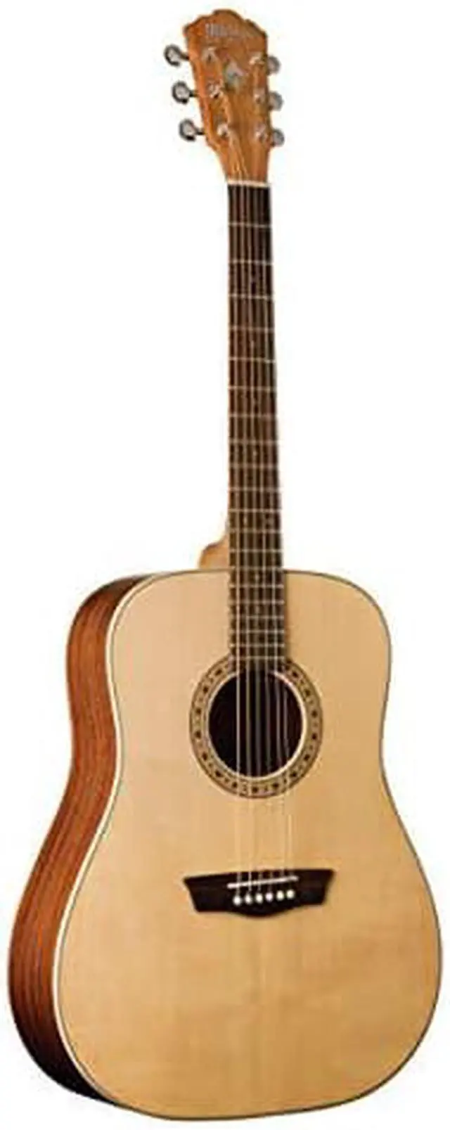 It's the Harvest Series D7S Dreadnought Acoustic Guitar in Natural finish, a beautiful and stylish instrument crafted by the reputable brand, Washburn. Known for its elegance, reliability, and durability, this guitar is a testament to Washburn's commitment to producing high-quality musical instruments.
