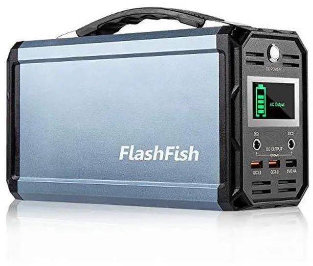 300W Solar Generator, FlashFish 60000mAh Portable Power Station Camping Potable Generator, CPAP Battery Recharged by Solar Panel/Wall Outlet/Car, 110V AC Out/ DC 12V /QC USB Ports for CPAP Camp Travel