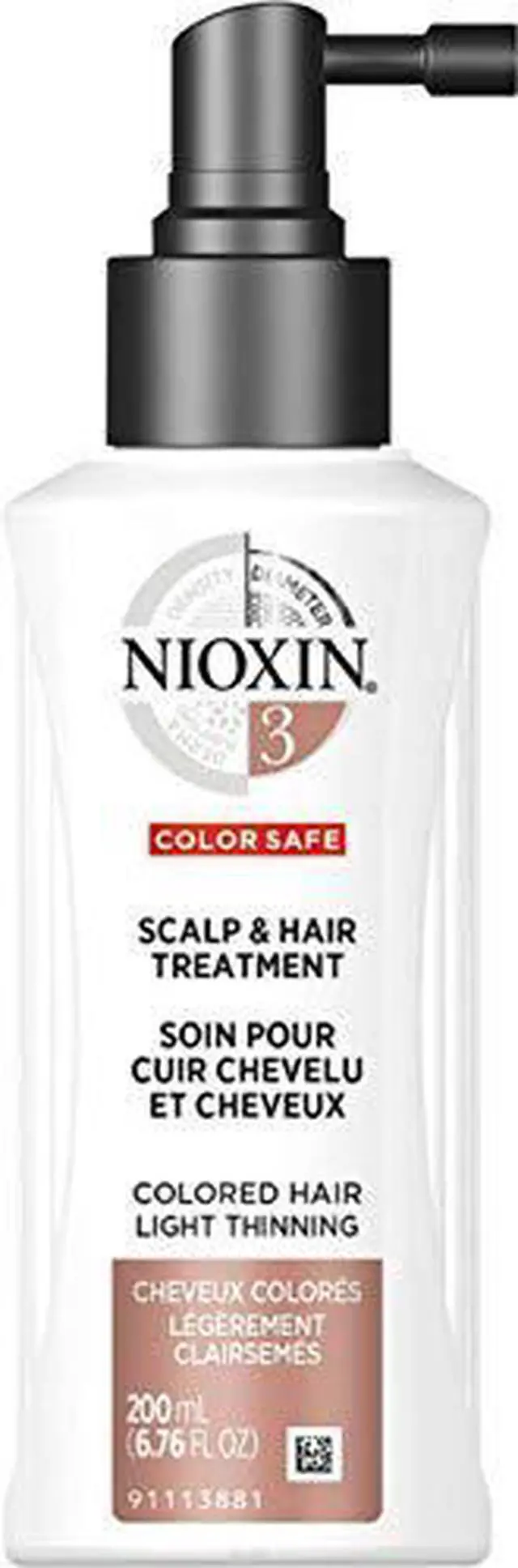 Product Description Refresh the scalp and increase hair volume with NioxinAs 3-part System 3 Scalp & Hair Treatment for colored Hair with Light Thinning This diameter-increasing professional product refreshes the scalp and gives a healthy shine to your hair With its Transactive Delivery System 20, the volumizing Nioxin leave-on treatment helps provide thicker hair by increasing the fullness of each hair strand Nioxin Scalp & Hair Treatment is the final step of the 3-part System, which amplifies hair texture while protecting against breakage Nioxin Nioxin is the only salon brand with 25+ years of experience in thinning hair Nioxin, supported by The Institute of Trichologists, believes the scalp is an extension of facial skin and requires the same attention and care