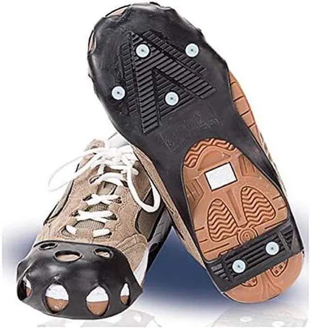 Add snow and ice traction to any pair of shoes with these slip-on, stowable traction devices! They also have all purpose stretch to fit over footwear for a snug and contoured fit. A special compound and form-ftting design retains elasticity in all temperatures to fit almost any footwear. The wide, thick heel straps give dependable grip, durability, and long wear. Bi-directional tread with diamond pattern provides excellent traction, push-off, and lateral grip.