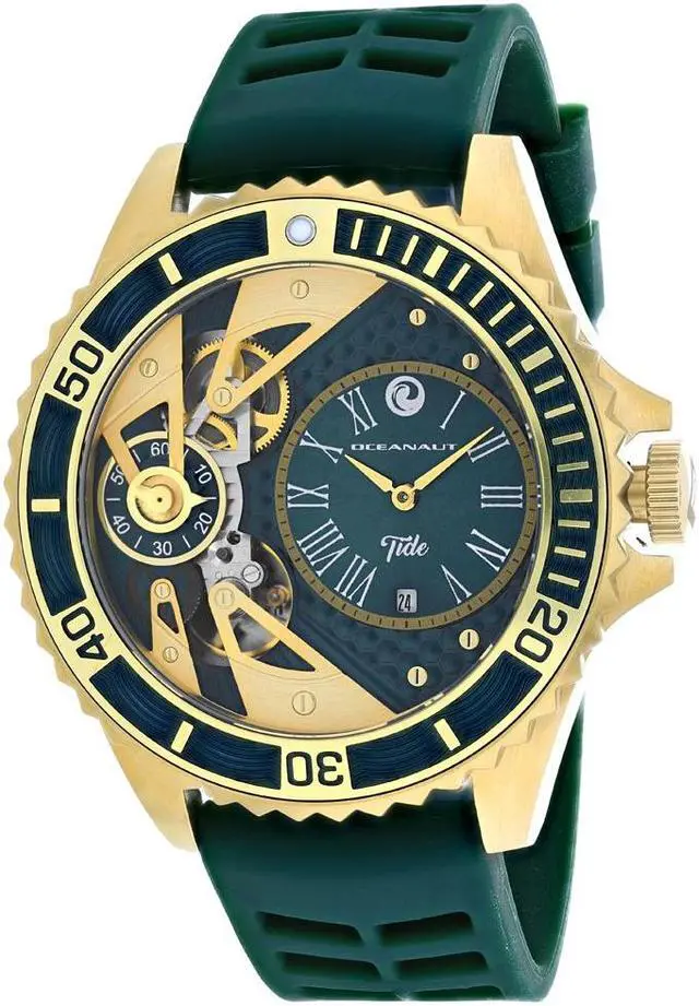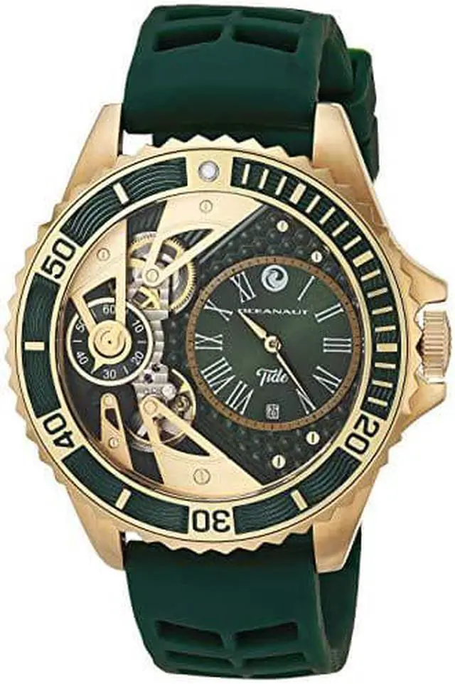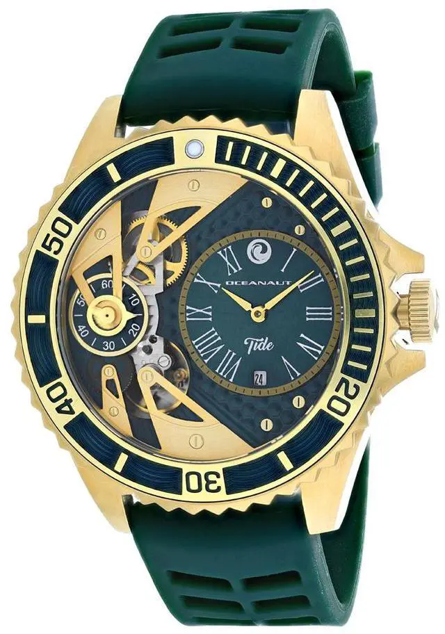 Oceanaut Mens Tide Stainless Steel Quartz Rubber Strap, Green, 22 Casual Watch (Model: OC0995)