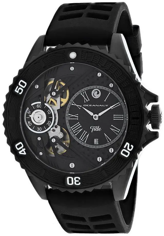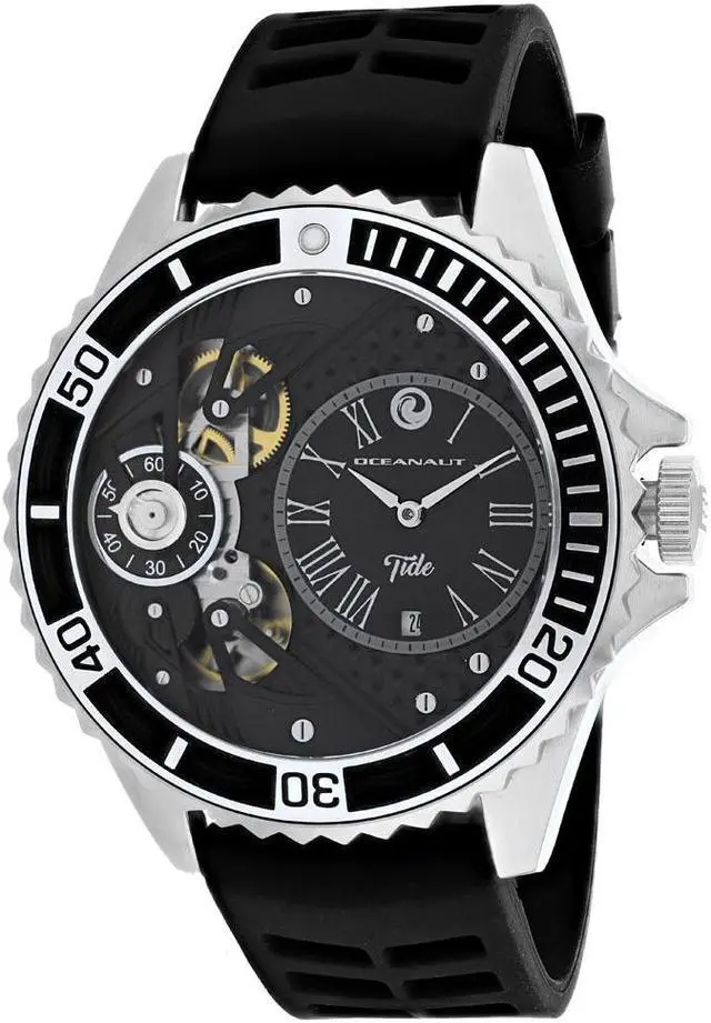 Oceanaut Mens Tide Stainless Steel Quartz Rubber Strap, Black, 22 Casual Watch (Model: OC0997)