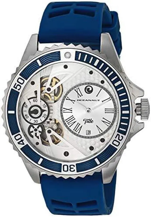 Oceanaut Mens Tide Stainless Steel Quartz Rubber Strap, Blue, 22 Casual Watch (Model: OC0992)