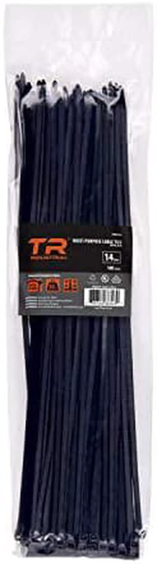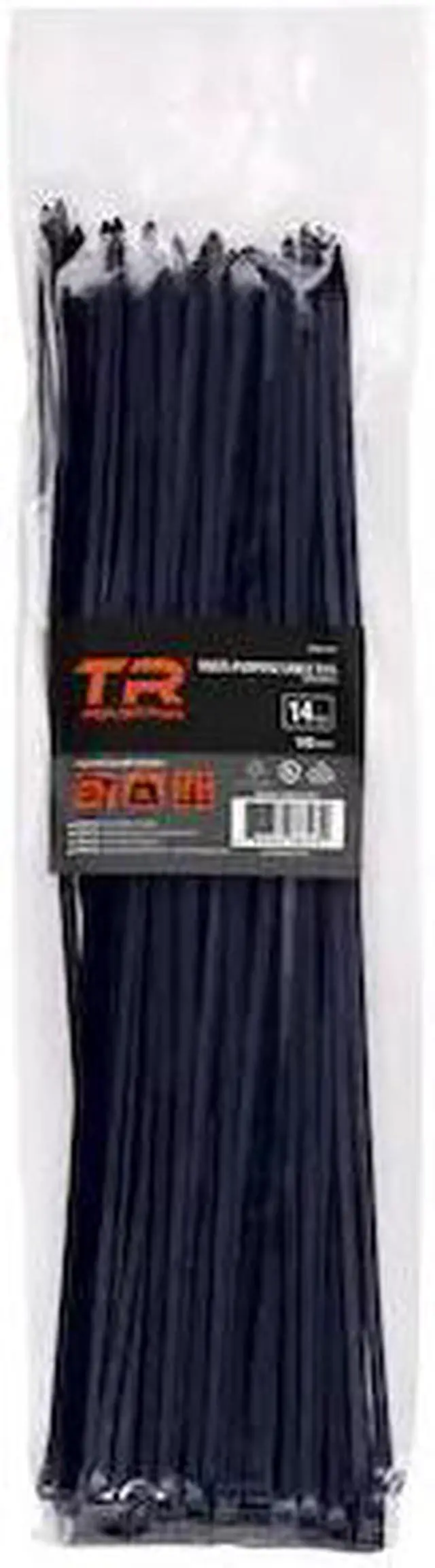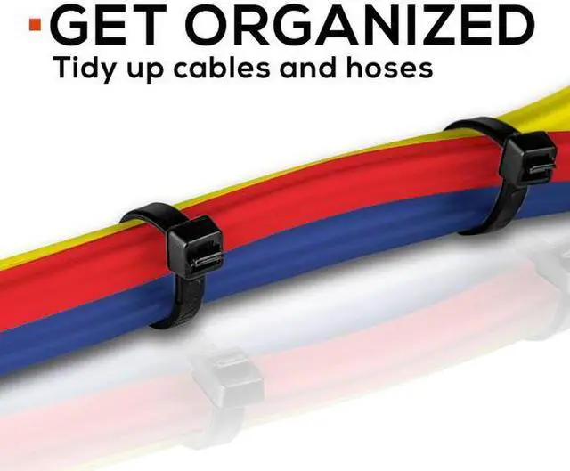 This 100 piece set of industrial strength 6/6 nylon cable ties can help organize your cables and other miscellaneous items that need to be tied together. With a length of 14 inches and tensile strength of 50 lbs, theyre usable in several applications and wont loosen up. The ideal working temperature is between -40 to 85 degrees Celsius or -40 to 185 degrees Fahrenheit