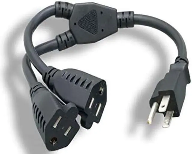 This handy cable features a male 3-prong plug which splits to two female 3-prong shrouds.