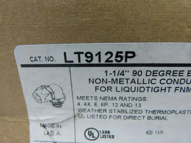 Liquid-Tight Conduit Fitting, Insulated Yes, Trade Size 1 1/4 in, Compatible Conduit Type Flexible Liquid Tight Non-Metallic Type B Conduit, Box Connection 1 1/4 in MNPT, Thermoplastic, Color Black, For Use With Flexible Liquid Tight Non-Metallic Type B Conduit, Connection Orientation 90 Degrees, Mesh Material No Strain Relief Mesh, Hazardous Location Rating Class I, Division 2, Class II, Division 1 and 2, Groups E, F, G, Class III, Compatible Knockout Trade Size 1 1/4 in. This item has been restricted from sale in the following state (s): []