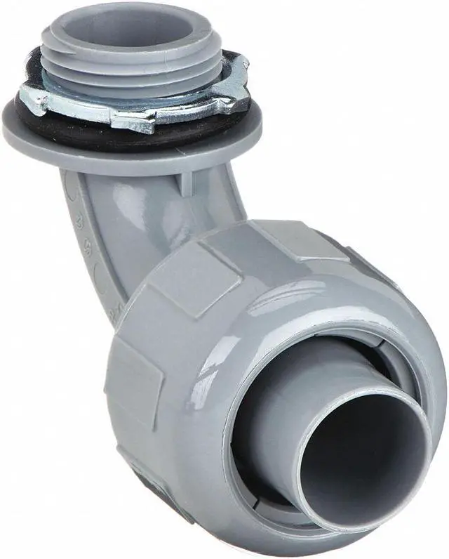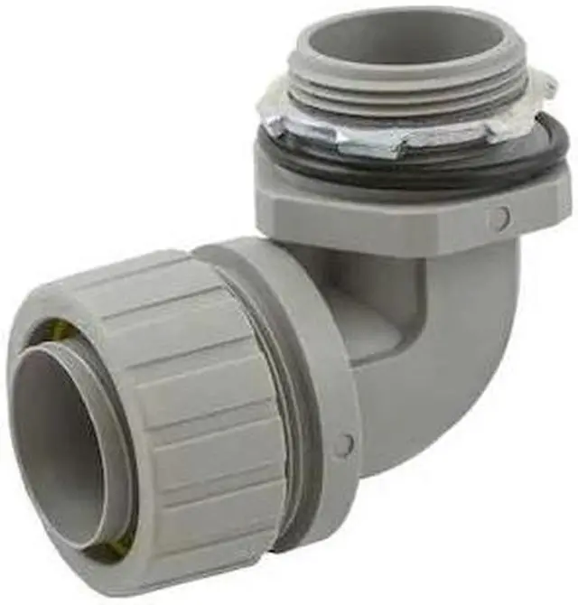 Liquid-Tight Conduit Fitting, Insulated Yes, Trade Size 1 1/4 in, Compatible Conduit Type Flexible Liquid Tight Non-Metallic Conduit, Box Connection 1 1/4 in MNPT, Nylon, Color Gray, For Use With Flexible Liquid Tight Non-Metallic Conduit, Connection Orientation 90 Degrees, Mesh Material No Strain Relief Mesh, Hazardous Location Rating Not Rated, Compatible Knockout Trade Size 1 1/4 in, Connector Style 90 Degrees, External Grounding Lug No, Indoor/Outdoor Usage Indoor/Outdoor