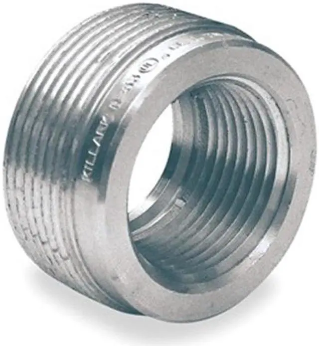 Reducing Bushing - Haz Loc, Thread Gender Female to Male, Trade Size 1/2 in, 3/4 in, Compatible Conduit Type IMC, Threaded RMC, Compatible Conduit Trade Size 1/2 in, 3/4 in, Ends - Hazardous Fittings 1/2 in FNPT x 3/4 in MNPT, Overall Length 3/4 in, Overall Height 2 in, Overall Width 2 in, Weight 0.02 lb, Aluminum, Finish Plain, Hazardous Location Rating Class I, Division 1 and 2, Groups A, B, C, D, Class I, Zones 1 and 2, Groups IIC, IIB, IIA, Class II, Division 1 and 2, Groups E, F, G, R