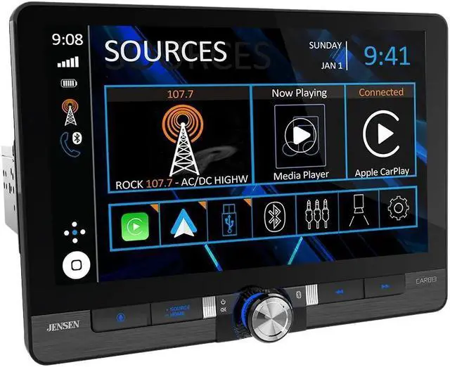 Upgrade your car audio experience with the Jensen CAR813 8" Digital Multimedia Receiver. Enjoy seamless connectivity with Wireless Apple Carplay and Android Auto. Equipped with 2 rear USB inputs for convenient charging at 2.1A. Easily integrate front and rear cameras for enhanced safety. Stay connected on-the-go with Bluetooth connectivity
