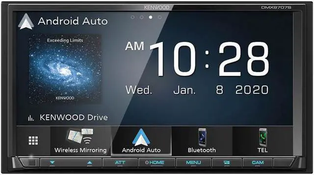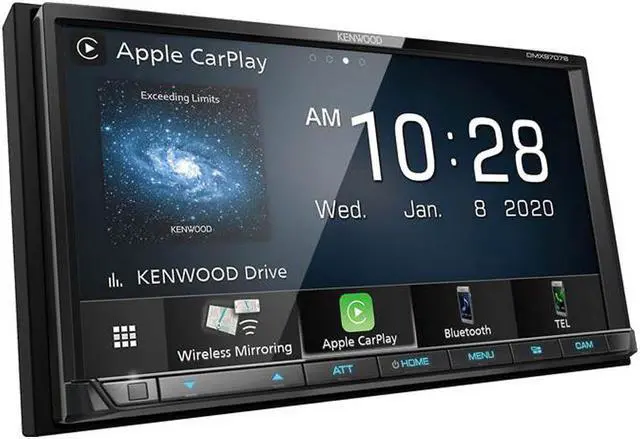 Kenwood's DMX9707S multimedia receiver with its 6.95" touchscreen display. Let's talk about the convenience factor: Kenwood builds wired and wireless Apple CarPlay and Android Auto into this powerhouse of a receiver, which means you'll get all the best smartphone integration features while your phone stays in your pocket or bag. If you need a charge, connect your phone via USB and functionality remains the same.