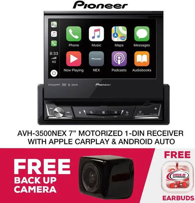 The Pioneer AVH-3500NEX is a 6.8" DVD receiver designed to enhance your in-car entertainment and connectivity experience. This versatile receiver is compatible with Alexa, CarPlay, and Android Auto, allowing seamless voice control and hands-free access to navigation, music, and messaging. With built-in Bluetooth, you can enjoy wireless audio streaming and hands-free calling for a safer driving experience. The unit also supports satellite radio, giving you access to a wide range of music, news, and entertainment channels. Featuring a high-resolution touchscreen display, the AVH-3500NEX delivers a user-friendly interface with crisp visuals and intuitive controls.