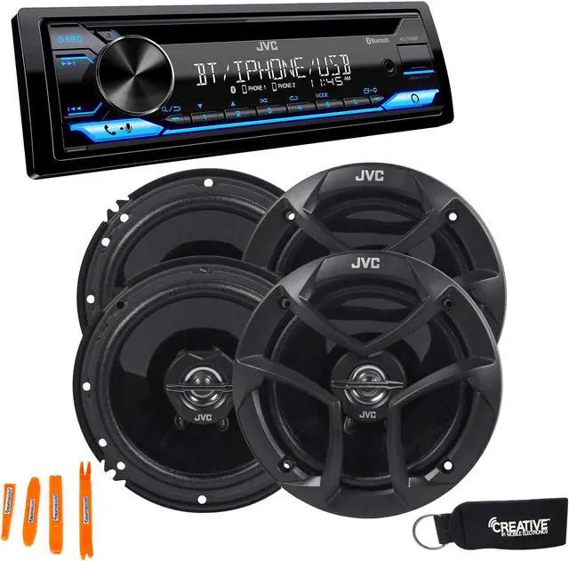 JVC KD-T710BT - CD Receiver featuring Bluetooth, Front USB, AUX, Amazon Alexa + Two Pairs Of JVC 6.5" Speakers-This bundle includes JVC KD-T710BT - CD Receiver featuring Bluetooth, Front USB, AUX, Amazon Alexa and 2 JVC CS-J620 Wireless 6.5" 2-Way Coaxial Car Audio 600 Watt Speaker Pair.