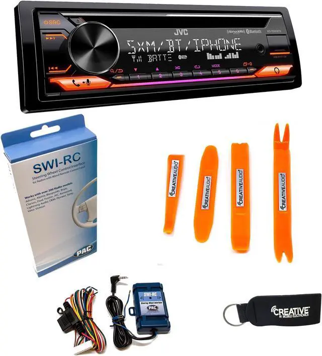 JVC KD-TD91BTS - CD Receiver w/ Bluetooth, USB, Amazon Alexa, SirusXM Ready + SWI-RC Steering Wheel Control Interface-This bundle includes the JVC KD-TD91BTS - CD Receiver featuring Bluetooth, Front USB, AUX, Amazon Alexa, SirusXM Ready (Requires Tuner) and PAC Audio SWI-RC Steering Wheel Control Interface for compatible radios.