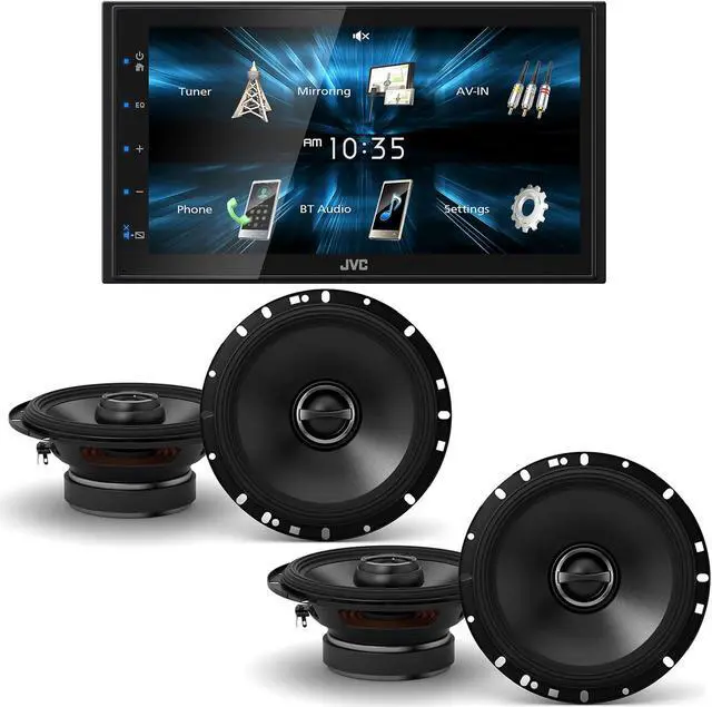JVC KW-M150BT Digital Media Receiver featuring 6.8" WVGA Capacitive Monitor with 2 Pairs Alpine S-S65 6.5" Type S Coax - This bundle includes: JVC KW-M150BT Digital Media Receiver featuring 6.8" WVGA Capacitive Monitor, 2 Alpine S-S65 S-Series 6.5-inch Coaxial 2-Way Speakers (pairs), a pry kit, and a Creative Audio coozy.