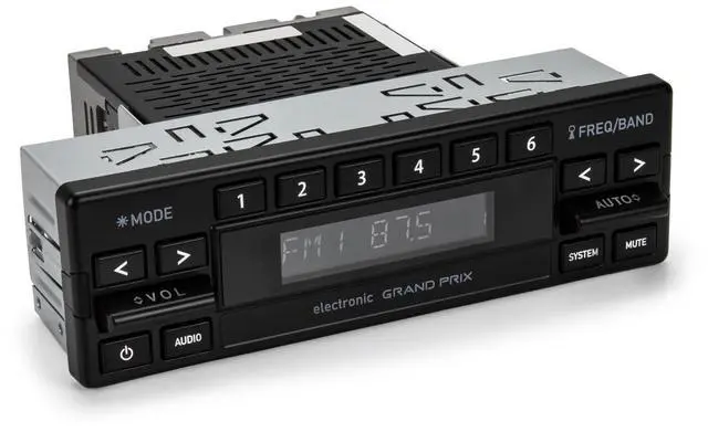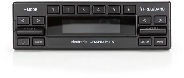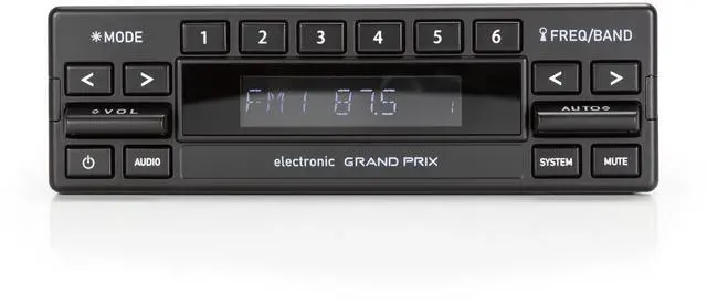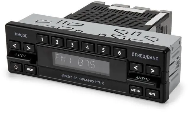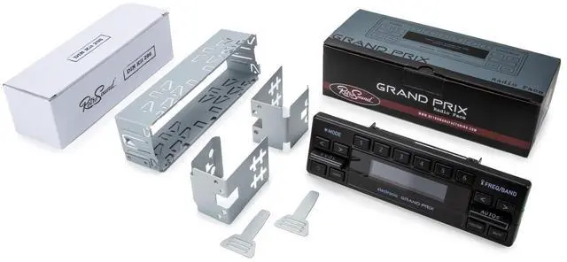 The RetroSound® Grand Prix perfectly compliments the interior styling of the 1980s European vehicles while updating the audio technology to today's standards. The unique design of the Grand Prix features authentic paddle-style controls along with low profile push-buttons and a adjustable color digital display. The Grand Prix is the perfect solution for updating the audio in your classic Mercedes, BMW, or Porsche while maintaining the original style of the factory electronics. A new Din Kit (#296) is included for an easy installation and factory-like fit.
