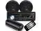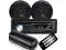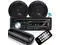 Full-function LCD screen. 3-beam laser tracking. 8x oversampling. Anti-skip mechanism. Auto power loading. Aux input. ID3 tag. 30 station presets. Full illumination button controls. Pair of 6.5" 150W waterproof speakers. Splashproof radio housing. Tinted face cover. 50W max x 4. Includes full-function wireless remote. Black. Class I laser product,