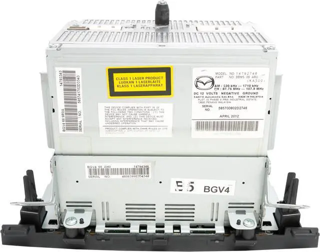 Part Number: BBM566AR0. This is for a Mazda AM FM Radio mp3 Single Disc CD Player. This radio has been professionally remanufactured, cleaned, and serviced as needed and thoroughly checked. The radio's appearance is blemished with scratches and discoloration on the face. See pictures for more detail. Radio is in 100% working order. This radio is being sold as a REPLACEMENT ONLY! The part number is BBM566AR0. If you do not have this exact part number currently in your vehicle, it will likely NOT WORK. If you are unsure of your part number, give us a call with your VIN and we should be able to provide you with the correct part number. They may look the same and have the same plugs but data streams may be different, not allowing them to code. For example, external amps are used in some cars and will not allow interchange, etc.