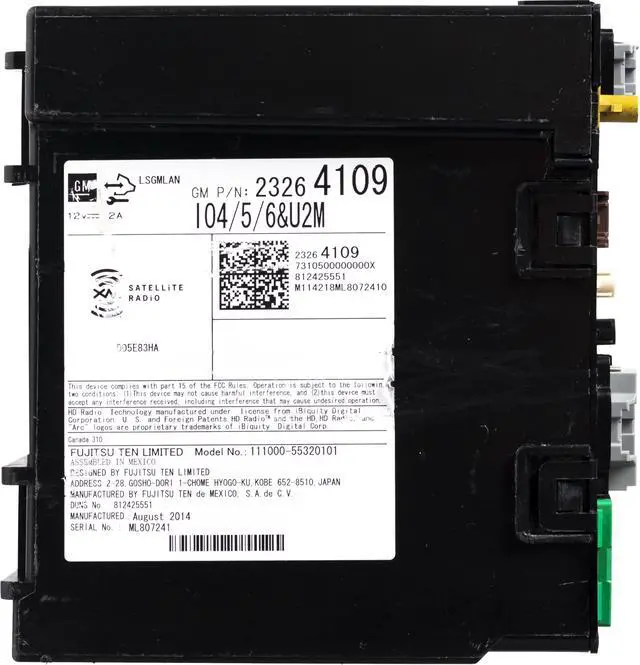 This is a Professionally Remanufactured SXM Satellite Receiver Module that fits 2013-2015 Chevrolet Silverado. Please see the pictures for more cosmetic details. Dealer unlock required upon installation. This item has been cleaned, serviced as needed, and thoroughly checked. The function is in 100% working order!