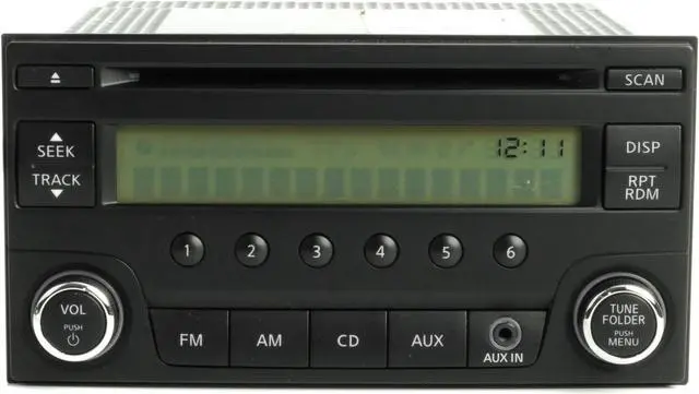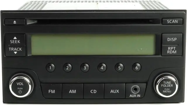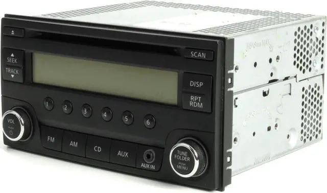 This listing is for a Nissan Micra - Versa AM FM Radio Single Disc CD Player w Aux and Bluetooth Capability. This radio has been professionally remanufactured, cleaned, and serviced as needed and thoroughly checked. The radio's appearance is good with a slight scratch in the display screen, as pictured, and is in 100% working order.