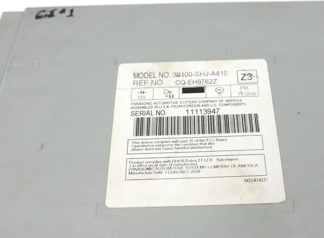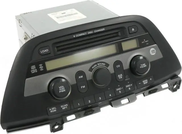 Part Numbers: 39100-SHJ-A40, 39100-SHJ-A400, 39100-SHJ-A41, 39100-SHJ-A42, 39100-SHJ-A420, 39100-SHJ-C40, 39100-SHJ-C41, 39100-SHJ-C42 This listing is for a Honda Odyssey AM FM MP3 Radio 6 Disc CD Player Satellite Ready. This radio has been professionally remanufactured, cleaned, and serviced as needed and thoroughly checked. The radio's appearance is good, as pictured, and is in 100% working order. REPLACEMENT ONLY This radio is being sold as a REPLACEMENT ONLY! The part number is 39100-SHJ-A410. If you do not have this exact part number currently in your vehicle, it will likely NOT WORK. If you are unsure of your part number, contact us with your VIN and we should be able to provide you with the correct part number. They may look the same and have the same plugs but data streams may be different, not allowing them to code. For example, external amps are used in some cars and will not allow interchange, etc.