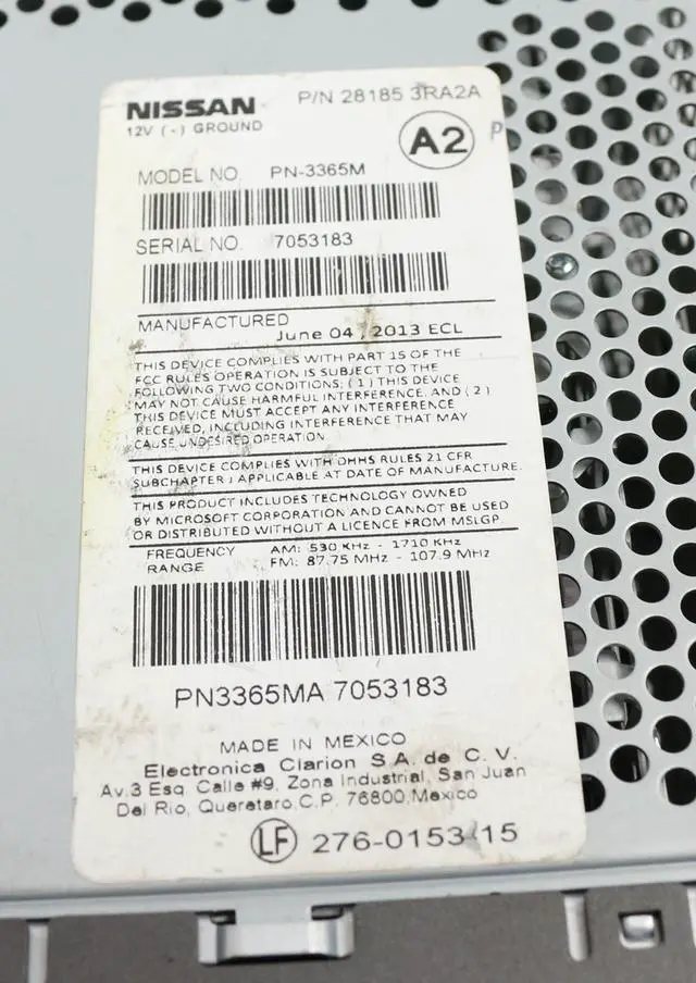Model Number: PN-3365M This is for a Nissan Sentra AM FM Radio Single Disc CD Player w Aux Input. This radio has been professionally remanufactured, cleaned, serviced as needed and thoroughly checked. The radio's appearance is decent with minor wear as pictured. This radio is in 100% working order. This radio is being sold as a REPLACEMENT ONLY! The part number is 28185-3RA2A. If you do not have this exact part number currently in your vehicle, it will likely NOT WORK. If you are unsure of your part number, contact us with your VIN and we should be able to provide you with the correct part number. They may look the same and have the same plugs but data streams may be different, not allowing them to code. For example, external amps are used in some cars and will not allow interchange, etc.