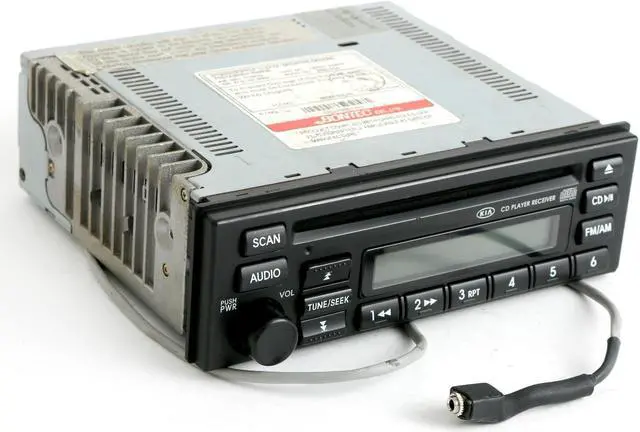 This listing is for a Kia Spectra 2002-2005 factory OEM AM FM CD Player Radio that has been upgraded with an auxiliary input on a pigtail for use with iPhone, iPod, MP3 Players, Satellite Radio, Android Phones and more! You will not lose any functionality when the auxiliary input is in use and the radio will have all factory OEM features!