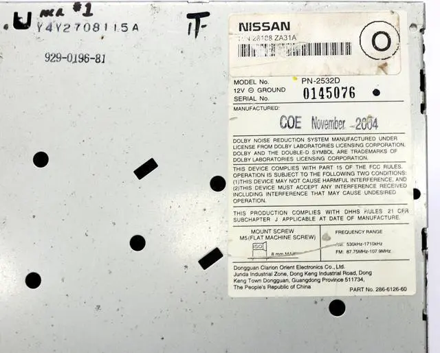 Part Number: 28188ZA31A. This is for a Nissan AM FM Radio Cassette 6 Disc CD Player. This radio has been professionally remanufactured, cleaned, and serviced as needed and thoroughly checked. The radio's appearance is good, as pictured, and is in 100% working order. This radio is being sold as a REPLACEMENT ONLY! The part number is 28188ZA31A. If you do not have this exact part number currently in your vehicle, it will likely NOT WORK. If you are unsure of your part number, contact us with your VIN and we should be able to provide you with the correct part number. They may look the same and have the same plugs but data streams may be different, not allowing them to code. For example, external amps are used in some cars and will not allow interchange, etc.