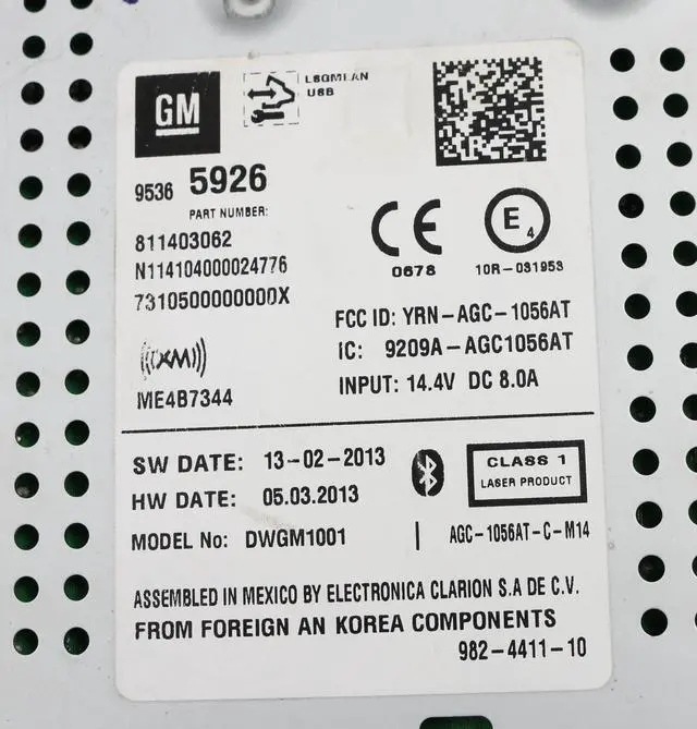 Option Code: UH7. This is for a Chevrolet AM FM Radio mp3 CD Player with Aux Input. This radio has been professionally remanufactured, cleaned, serviced as needed and thoroughly checked. The radio's appearance is good with chrome paint worn off of the knobs, as pictured, and is in 100% working order. This radio is being sold as a REPLACEMENT ONLY! The part number is 95365926. If you do not have this exact part number currently in your vehicle, it will likely NOT WORK. If you are unsure of your part number, contact us with your VIN and we should be able to provide you with the correct part number. They may look the same and have the same plugs but data streams may be different, not allowing them to code. For example, external amps are used in some cars and will not allow interchange, etc.