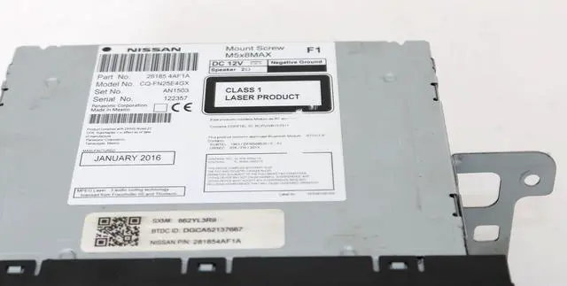 Model Number: CQ-FN25E4GX. This is for a Nissan Sentra AM FM Satellite Ready Radio mp3 single Disc CD Player. This radio has been professionally remanufactured, cleaned, and serviced as needed and thoroughly checked. The radio's appearance is in decent cosmetic condition, as pictured, and is in 100% working order. The part number is 281854AF1A. If you do not have this exact part number currently in your vehicle, it will likely NOT WORK. If you are unsure of your part number, give us a call with your VIN and we should be able to provide you with the correct part number. They may look the same and have the same plugs but data streams may be different, not allowing them to code. For example, external amps are used in some cars and will not allow interchange, etc.