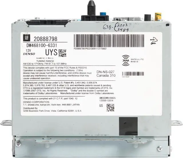 This unit is being sold as a REPLACEMENT ONLY! The part number is 20888798. If you do not have this exact part number, or compatible part number currently in your vehicle, it will likely NOT WORK. If you are unsure of your part number, contact us with your VIN and they should be able to provide you with the correct part number. They may look the same and have the same plugs but data streams may be different, not allowing them to code. For example, external amps are used in some cars and will not allow interchange, etc.