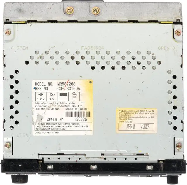This is a Professionally Remanufactured AM FM Receiver with Single-Disc CD Player that fits 2002-2004 Mitsubishi Diamante. Please see pictures for more cosmetic details. This item has been cleaned, serviced as needed and thoroughly checked. Function is in 100% working order!