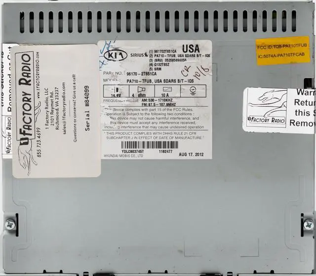 This listing is for a professionally remanufactured 2011-2013 Optima EX, 2011-2013 Optima LX, 2011-2013 Optima SX, 2011-2013 Optima Hybrid, or 2013 Optima SXL. This radio has been cleaned, serviced as needed and thoroughly checked. The item is in good cosmetic condition with minor wear throughout the face as pictured. Function is in 100% working order!