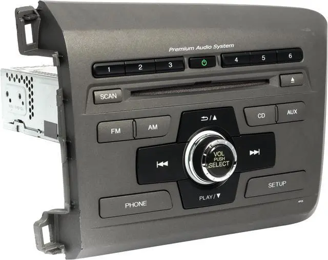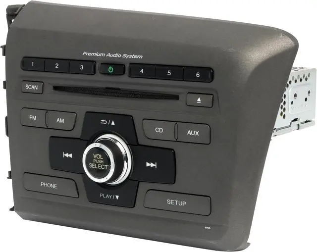 This is a Professionally Remanufactured AM FM Radio Single Disc CD MP3 Player that fits 2012 Honda Civic. Please see pictures for more cosmetic details. This item has been cleaned, serviced as needed and thoroughly checked. Function is in 100% working order!