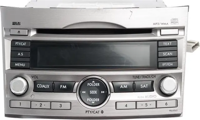 Face: PE645U1. This is for a Subaru Legacy AM FM Radio mp3 Single Disc CD Player w Satellite Capability. This radio has been professionally remanufactured, cleaned, serviced as needed and thoroughly checked. These radios are in good condition, with small, negligible scratches on the vinyl surface of the radio face, volume/scroll knobs, as pictured. This radio is in 100% working order. This radio is being sold as a REPLACEMENT ONLY! The part number is 86201AJ64A. If you do not have this exact part number currently in your vehicle, it will likely NOT WORK. If you are unsure of your part number, contact us with your VIN and we should be able to provide you with the correct part number. They may look the same and have the same plugs but data streams may be different, not allowing them to code. For example, external amps are used in some cars and will not allow interchange, etc.