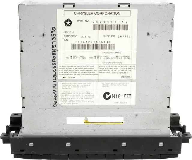Face Number: REQ. This is a professionally remanufactured 2007-2008 Dodge Avenger, Chrysler Sebring AM FM Radio 6 Disc DVD Player. This radio has been cleaned, serviced as needed, and thoroughly checked. The appearance of this radio is in decent condition with minor wear on the surface and display as pictured. The function is perfect! This radio is being sold as a REPLACEMENT ONLY! The part number is 05064111AJ. If you do not have this exact part number or compatible part number currently in your vehicle, it will likely NOT WORK. If you are unsure of your part number, give a dealer a call with your VIN and they should be able to provide you with the correct part number. They may look the same and have the same plugs but data streams may be different, not allowing them to code. For example, external amps are used in some cars and will not allow interchange, etc.