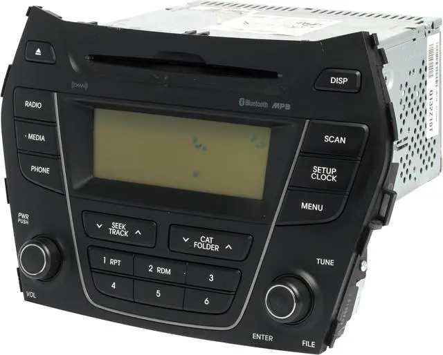 This is a Professionally Remanufactured AM FM Radio Satellite Bluetooth Single Disc CD MP3 Player that fits 2013-2014 Hyundai Santa FE. Please see pictures for more cosmetic details. This item has been cleaned, serviced as needed and thoroughly checked. Function is in 100% working order!