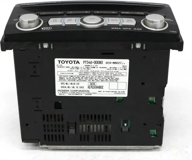 Face Number: T1808. This is for a Toyota Scion TC - XB - XD AM FM Radio mp3 Single Disc CD Player. This radio has been professionally remanufactured, cleaned, and serviced as needed and thoroughly checked. The radio's appearance is decent with minor wear, as pictured, and is in 100% working order. This radio is being sold as a REPLACEMENT ONLY! The part number is PT546-00080. If you do not have this exact part number currently in your vehicle, it will likely NOT WORK. If you are unsure of your part number, contact us with your VIN and we should be able to provide you with the correct part number. They may look the same and have the same plugs but data streams may be different, not allowing them to code. For example, external amps are used in some cars and will not allow interchange, etc.