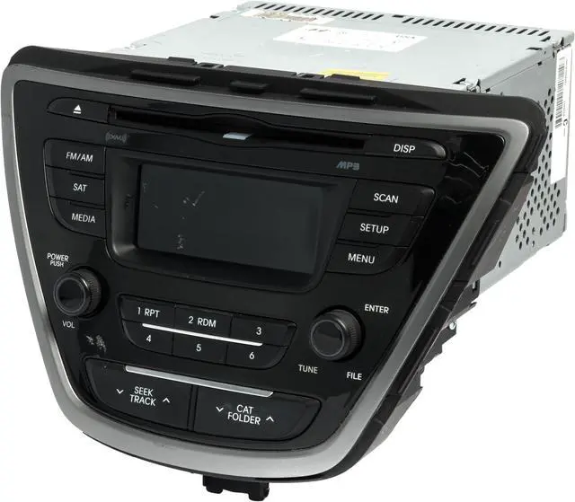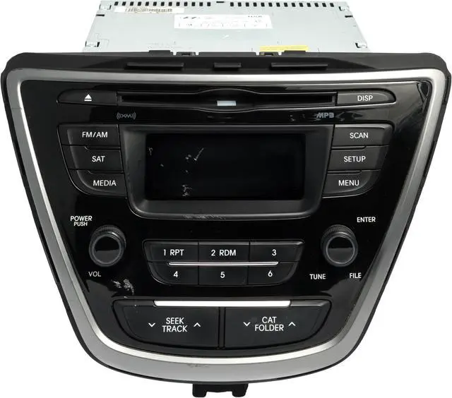 This is a Professionally Remanufactured AM FM Radio Satellite Single Disc CD MP3 Player that fits 2014-2016 Hyundai Elantra. Please see pictures for more cosmetic details. This item has been cleaned, serviced as needed and thoroughly checked. Function is in 100% working order!