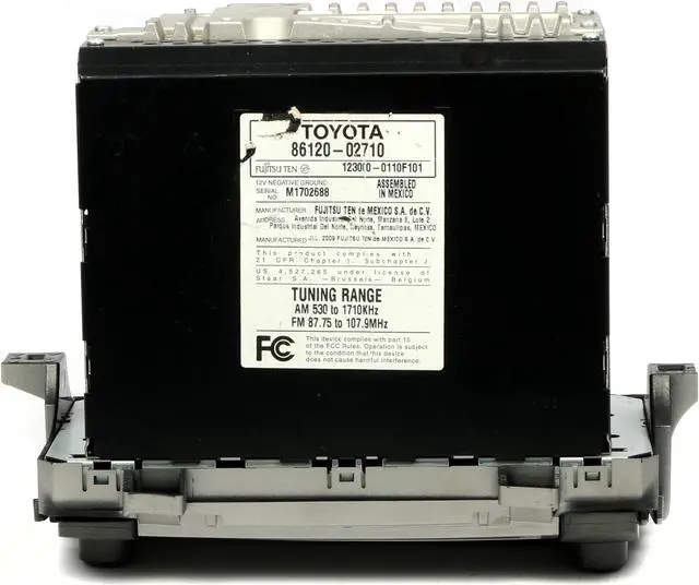 Part Number: 86120-02710. This is for a Toyota Matrix AM FM Radio mp3 Single Disc CD Player. This radio has been professionally remanufactured, cleaned, and serviced as needed and thoroughly checked. The radio's appearance is decent with a chip above the CD mech, as pictured, and is in 100% working order. This radio is being sold as a REPLACEMENT ONLY! The part number is 86120-02710. If you do not have this exact part number currently in your vehicle, it will likely NOT WORK. If you are unsure of your part number, contact us with your VIN and we should be able to provide you with the correct part number. They may look the same and have the same plugs but data streams may be different, not allowing them to code. For example, external amps are used in some cars and will not allow interchange, etc.