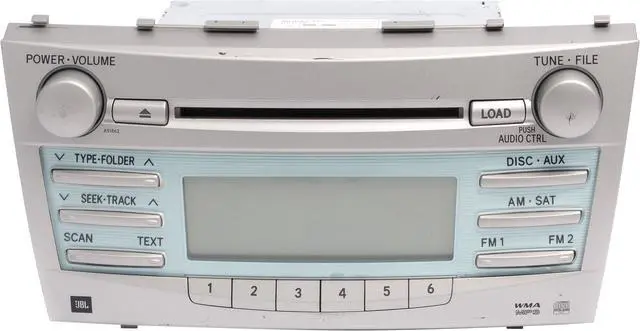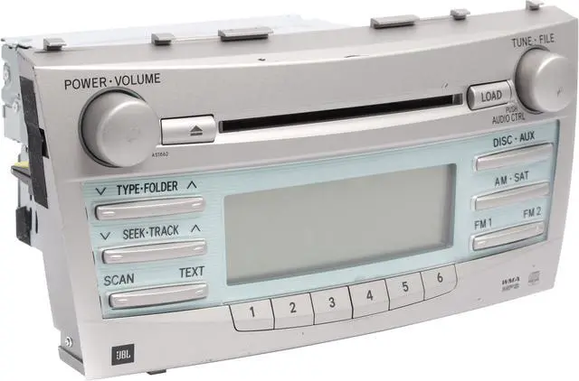 This is a professionally remanufactured AM FM Radio Satellite 6 Disc CD MP3 Player that fits a 2007-2009 Camry. Please see pictures for more cosmetic details. This item has been cleaned, serviced as needed and thoroughly checked. Function is in 100% working order!