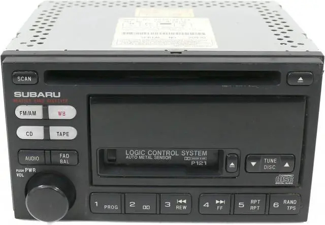 Face Code: P121. This is for a Subaru AM FM Radio CD Cassette Player. This radio has been professionally remanufactured, cleaned, serviced as needed and thoroughly checked. The radio's appearance is decent, as pictured, and is in 100% working order.