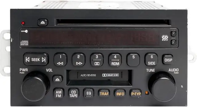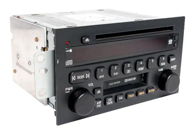 This listing is for a professionally remanufactured Buick Rendezvous AM FM Radio Cassette CD Player. This radio has been cleaned, serviced as needed, and thoroughly checked. This radio is in 100% working condition scratches on the screen & wear throughout the face.
