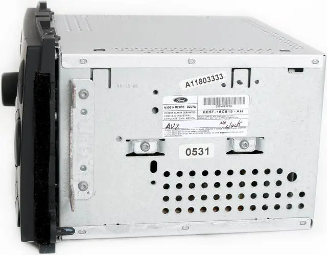 Compatible Part Numbers: 6E5T-18C815-AD, 6E5T-18C815-AE, 6E5T-18C815-AA, 6E5T-18C815-AB, 6E5T-18C815-AC, 6E5T-18C815-AF and 6E5T-18C815-AG. This is for a 2006 Ford Fusion and Mercury Milan AM FM 6 Disc mp3 CD Radio that has been upgraded with an auxiliary 3.5 mm input. Please confirm that these are the mounting brackets and plugs that you need before purchase. Some of the vehicles on the chart used more than one style of radio. Please note that this radio does NOT include a clock.