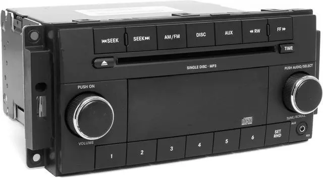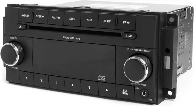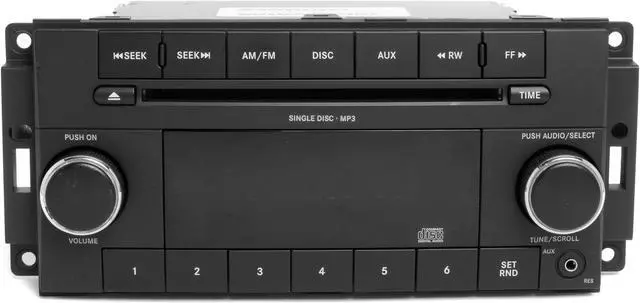 This listing is for a Dodge and Jeep AM FM Radio mp3 Single Disc CD Player with Auxiliary Input. This radio has been professionally remanufactured, cleaned, serviced as needed and thoroughly checked. The radio's appearance is great, as pictured. This radio is in 100% working order.